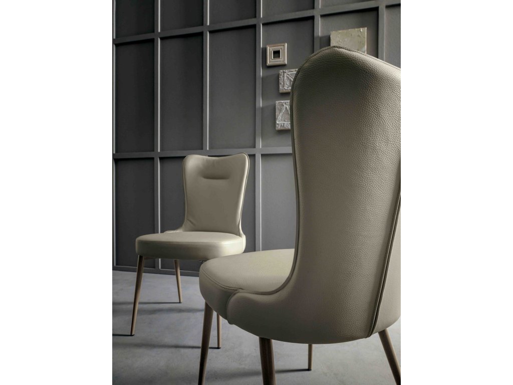Minnie je židle designovaná s mladistvým duchem a pulzující osobností. Vysoké opěradlo s plynulými, obklopujícími liniemi vás vybízí k relaxaci. Její profil je definován tenkým lemováním, které podtrhuje její styl. Kovové nohy ji předurčují k vybavení obývacích pokojů nebo obzvláště sofistikovaných kuchyní.