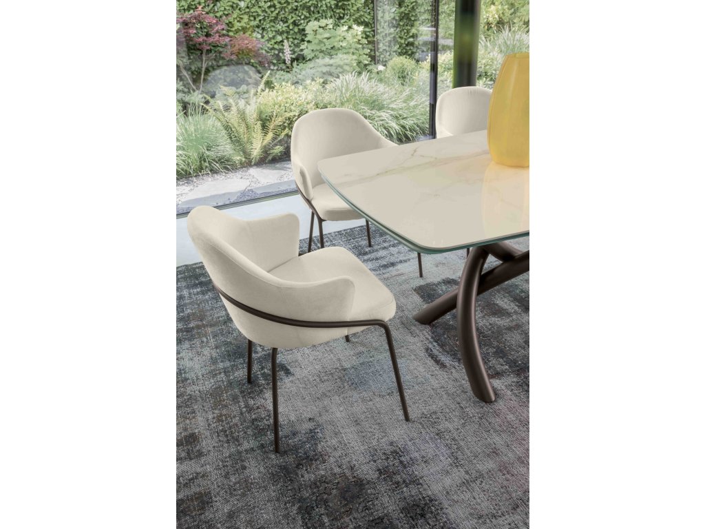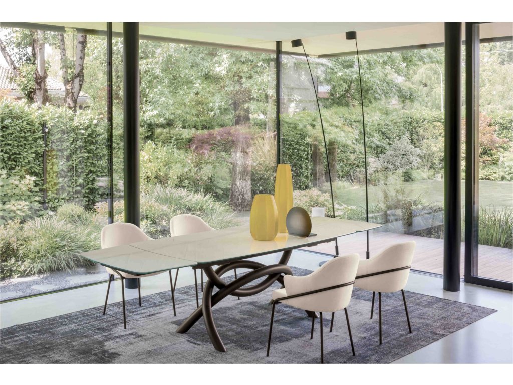 Stůl Arco je designový jídelní stůl, který spojuje luxusní eleganci s maximální pevností. Keramická deska v kontrastu s jemně propletenou podnoží vytváří stabilní a nadčasový prvek do každého moderního interiéru. Dostupný také v rozkládací variantě