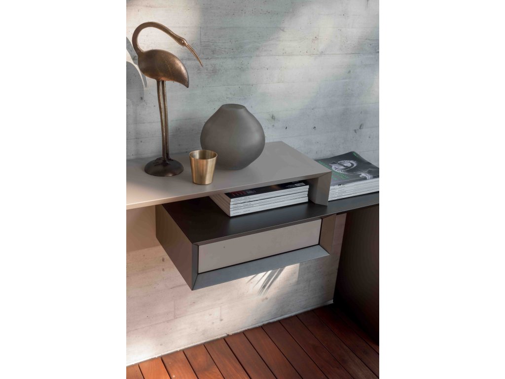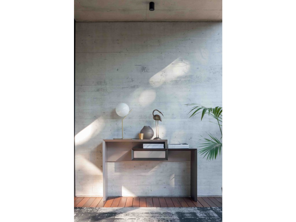 Dvoubarevná konzole se zásuvkou, z matně lakovaného MDF.
