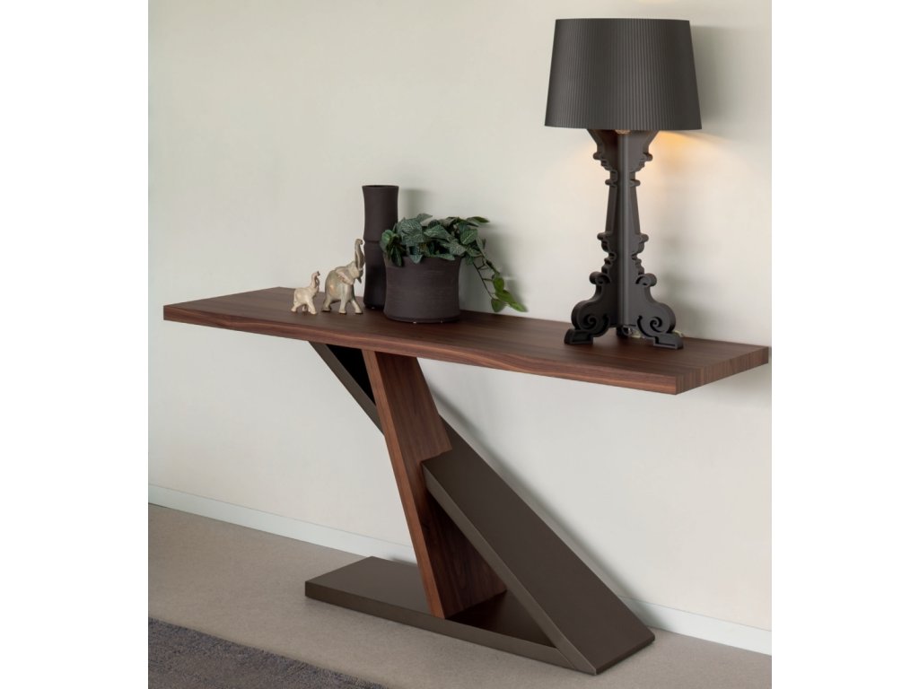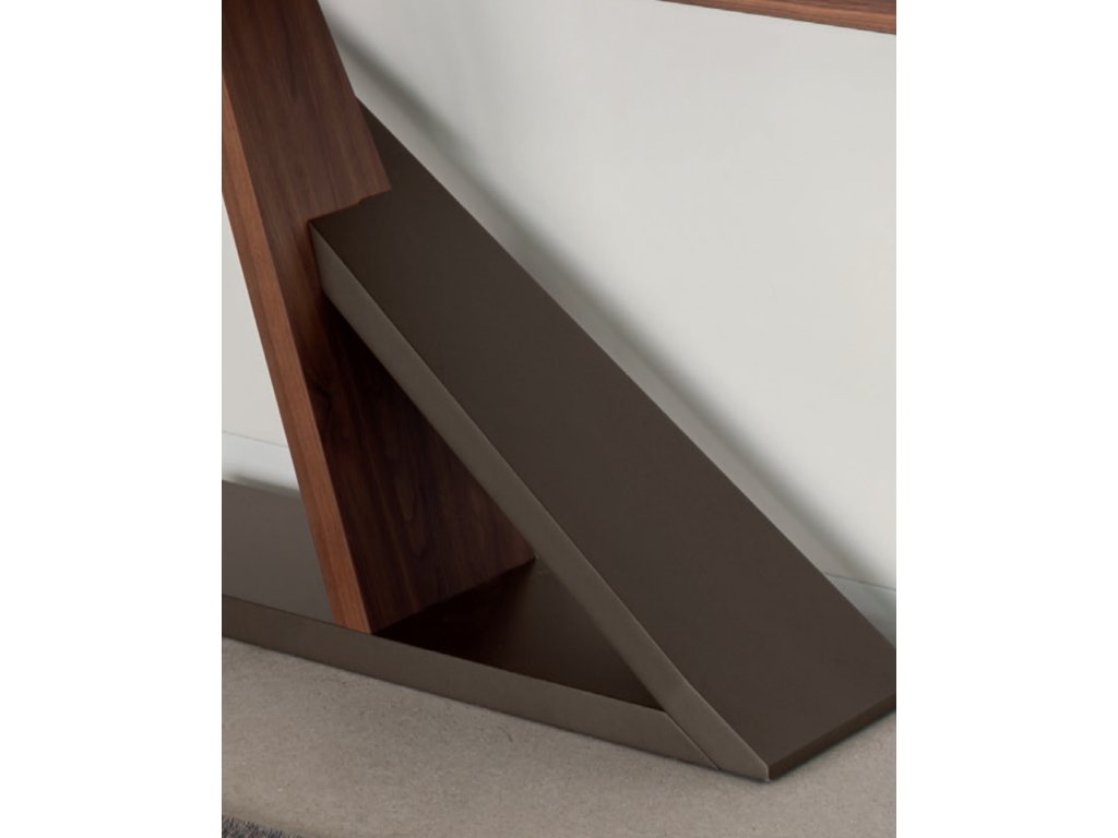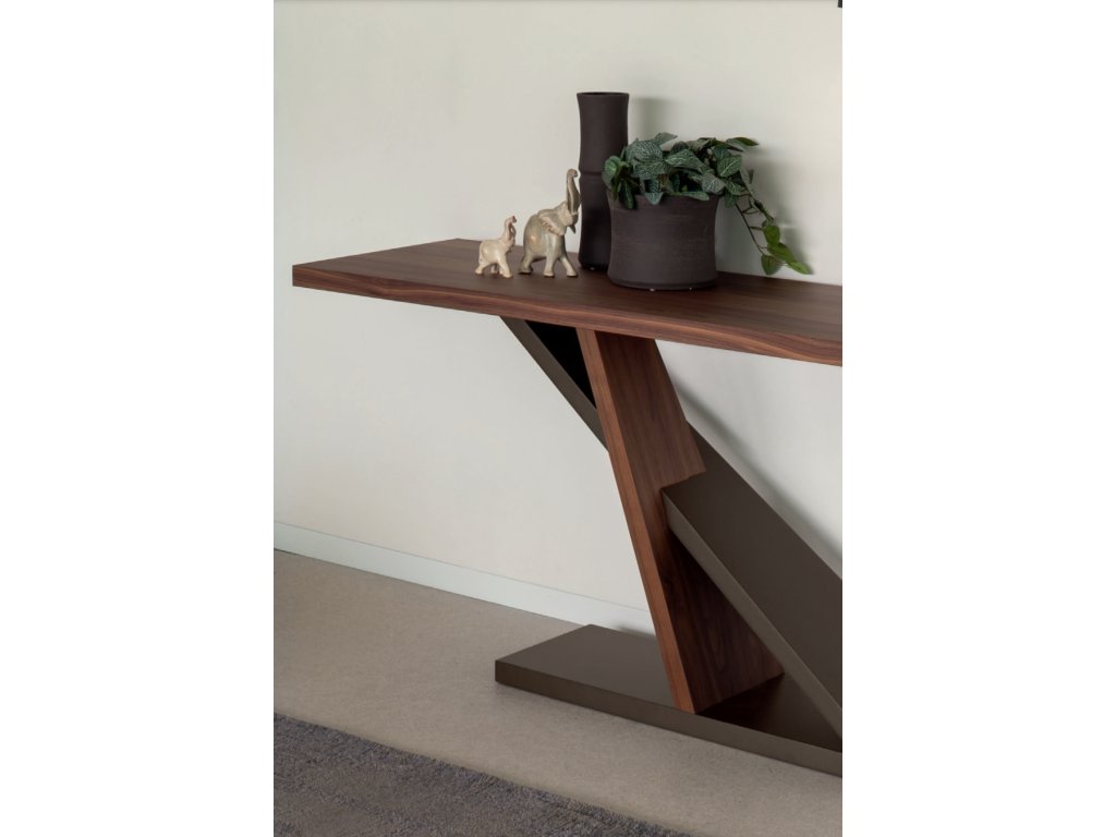 Charakteristickým rysem konzole Zed je její štíhlá základna, z níž vychází ořechový profil, který plynule přechází do vrchní desky. Čisté linie vyjadřují pocit solidnosti, který dále umocňuje bronzově lakovaná vložka. Díky tomu je konzola mimořádně všestranným a vysoce kvalitním kusem nábytku.