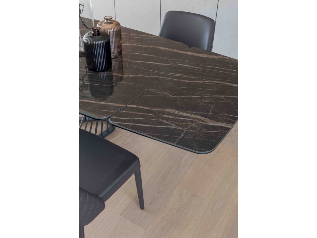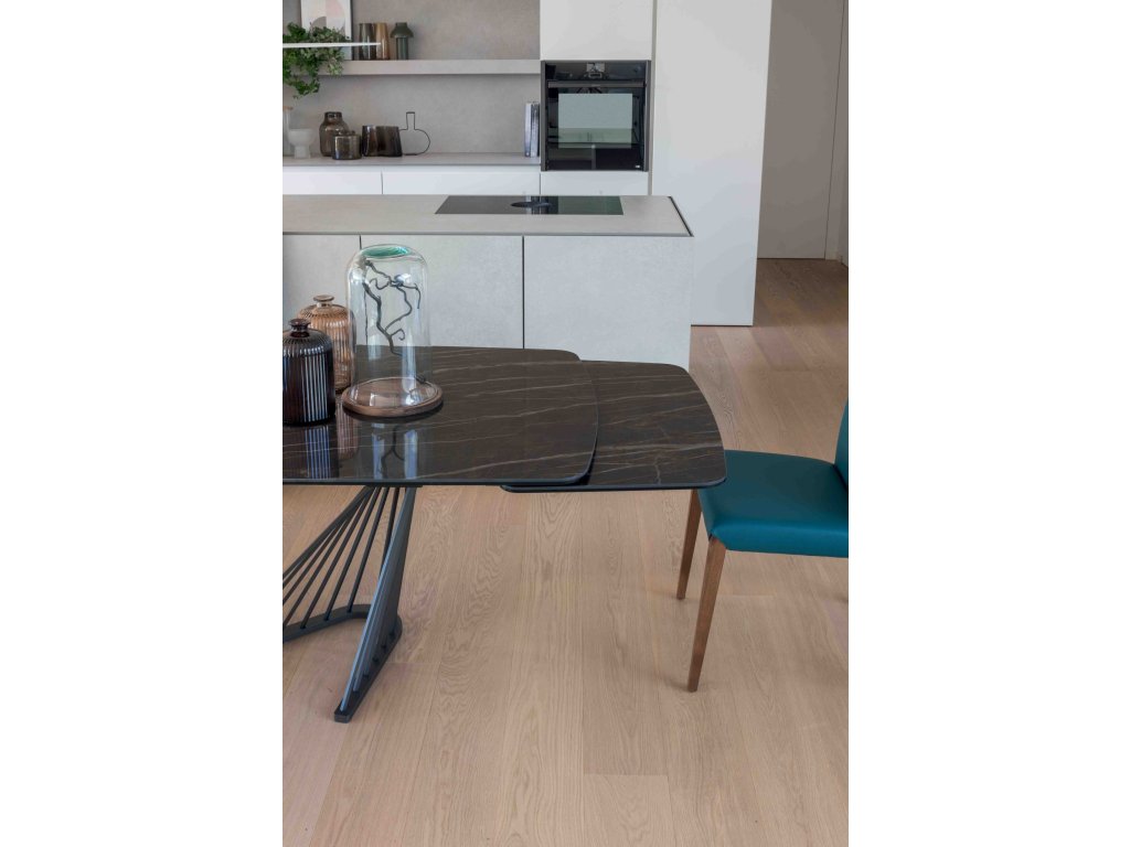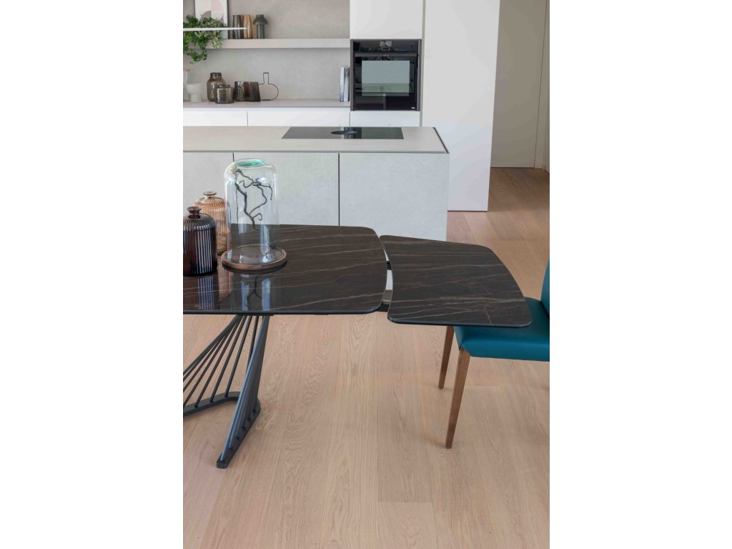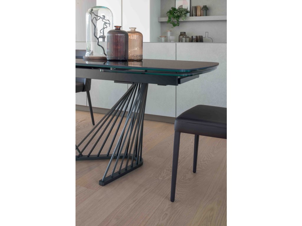 Designový jídelní stůl Arpa je mistrovským spojením lehkosti skla, precizní kovové konstrukce a výrazného architektonického designu. Originálně tvarovaná podnož tvořená jemnými liniemi vytváří stabilní, a přitom vizuálně lehký celek. Arpa se stává dominantou moderního interiéru a podtrhuje jeho exkluzivní charakter.