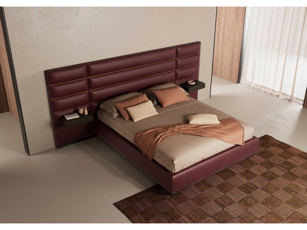TAMIGI slibuje působivost a majestátnost hned od prvního pohledu. Vysoké, čalouněné čelo postele, charakterizované zaoblenými panely po celé délce, které jsou zvýrazněny kovovými vložkami, jež je vymezují.