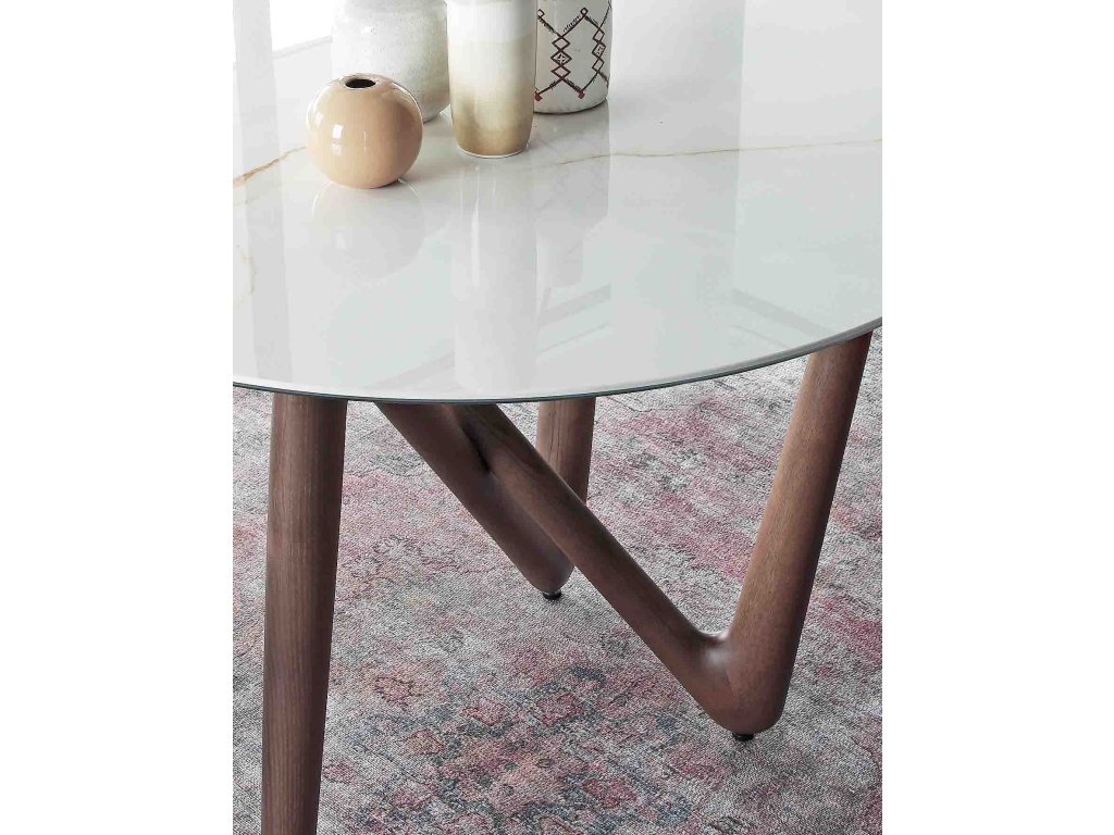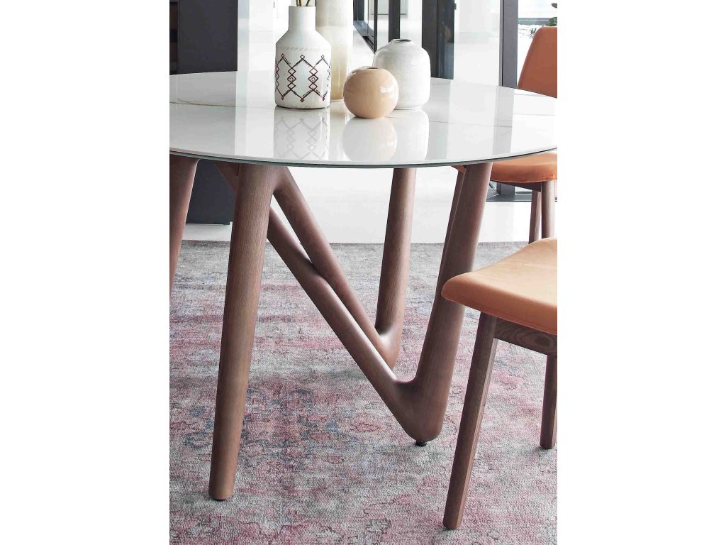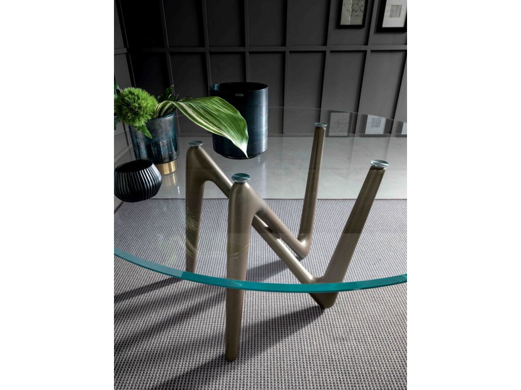 Ve své nejmenší verzi zdůrazňuje kulatý stůl Esse svou jedinečnost podnoží, která mění tvar v závislosti na úhlu pohledu. Skleněná nebo keramická deska lehce spočívá na čtyřech světových stranách, čímž přitahuje pohled diváka a vede ho k obdivování tohoto skutečně originálního díla.