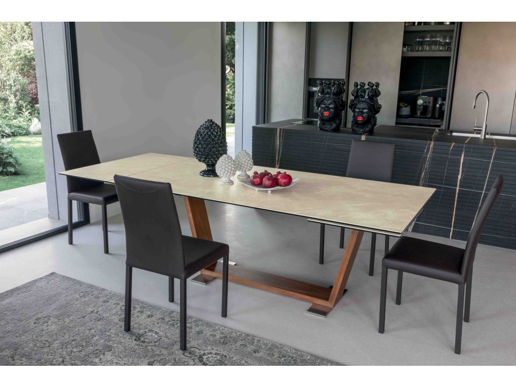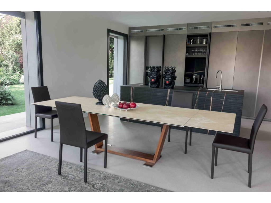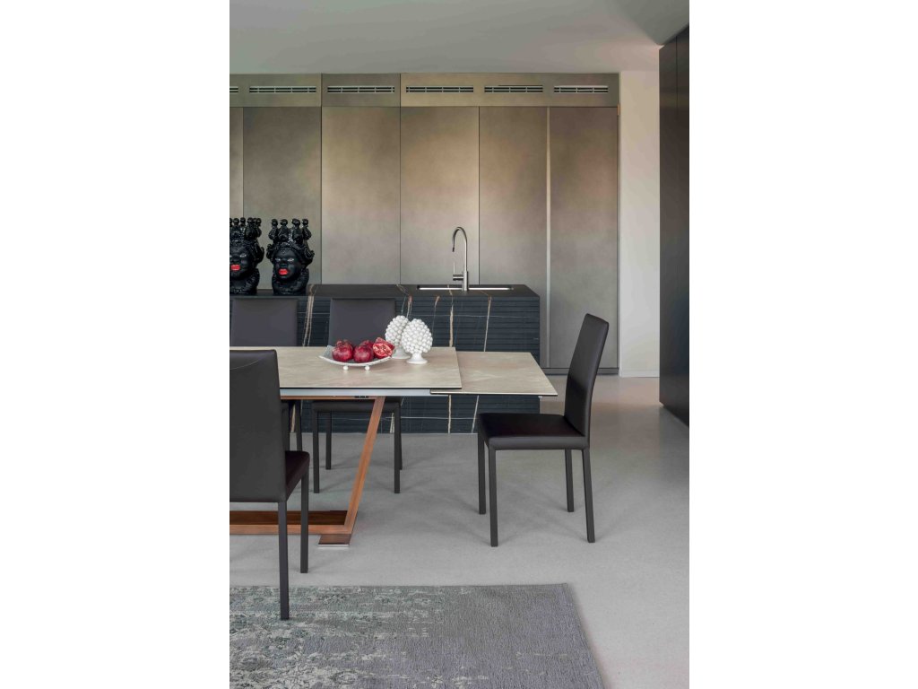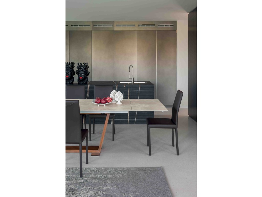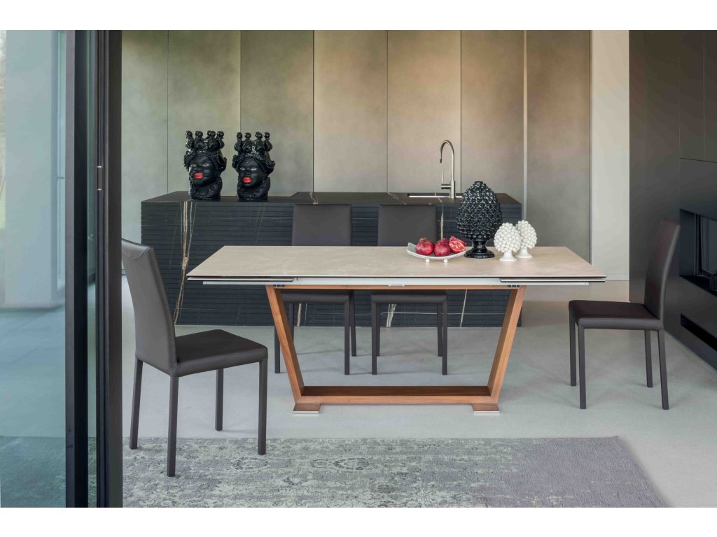 Rozkládací stůl Oblique kombinuje eleganci a funkčnost. Jemně zpracovaná keramická deska nabízí jedinečný hmatový pocit, zatímco zkosená základna desku elegantně podpírá. Design, který stimuluje smysly a obohacuje každý prostor o kouzlo.