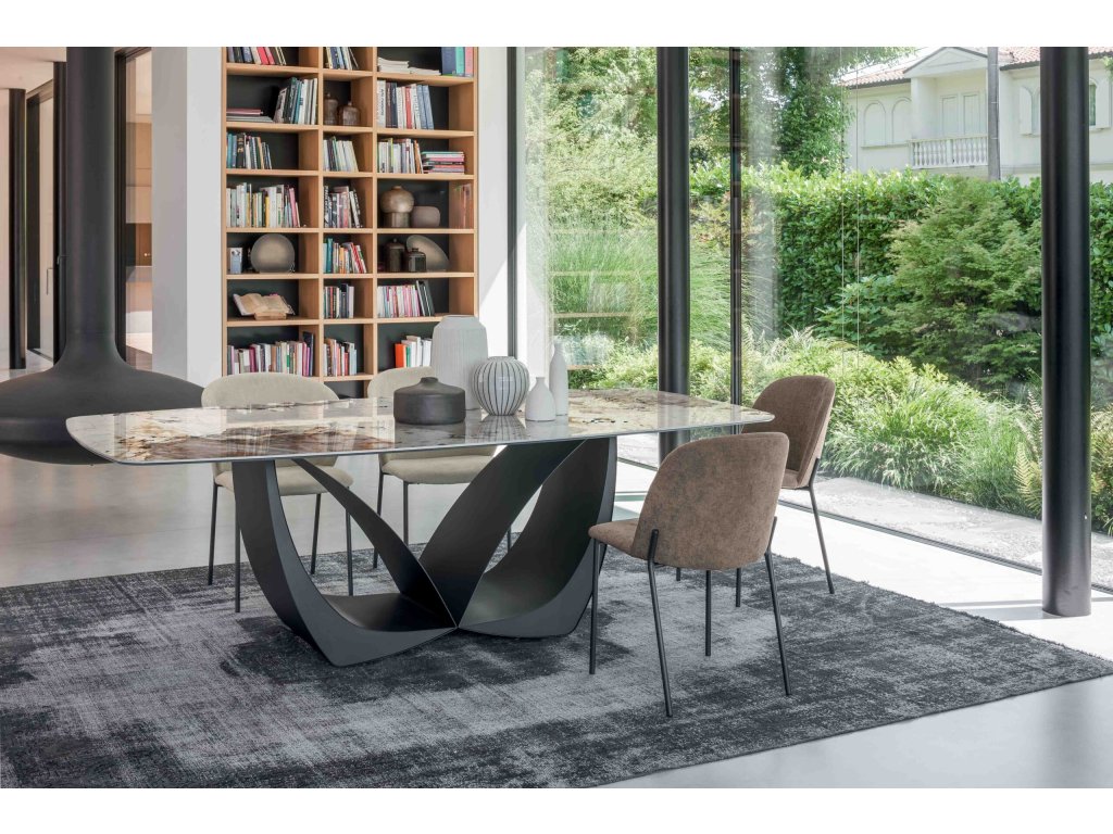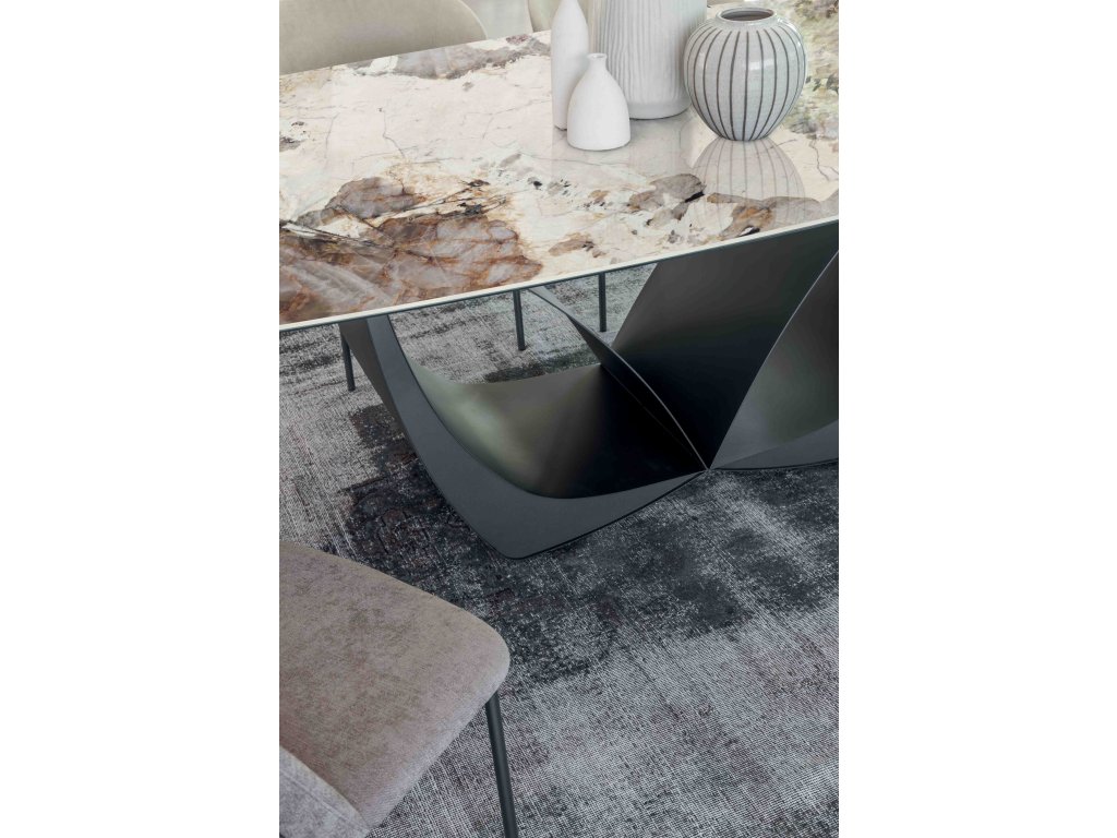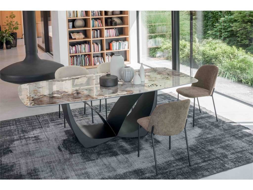 Stůl Zenit je skutečnou oslavou jednoduchosti a umění. Dva zaoblené prvky ve tvaru slzy, dokonale symetrické a tvarované, se prolínají v překvapivém spojení a vytvářejí nečekaný efekt, který upoutá pozornost. Elegantní a rafinovaná vrchní deska dodává nádech jedinečné elegance.