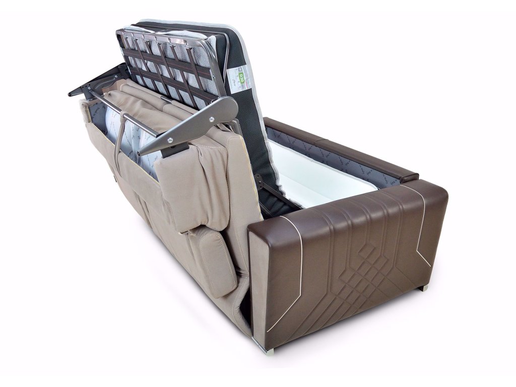 Mechanismus je inovativní integrovaný systém pro pohovku 1. postele s integrovaným relaxačním systémem. Tento systém byl navržen a studován tak, aby zajistil pohodlí křesla s integrovaným systémem zvedání podnoží, který zaručuje i použití rozkládací pohovky. Postel se síťovým roštem a výklopným mechanismem kovové konstrukce s plochou na spaní s podnoží z tavné oceli, záda s ráčnovou opěrkou hlavy, umožňuje regulaci dvou opěrek hlavy, které jsou zcela nezávislé.