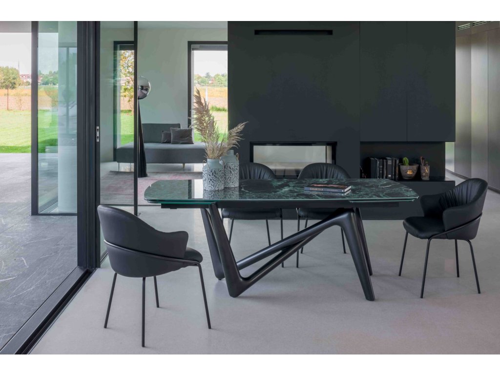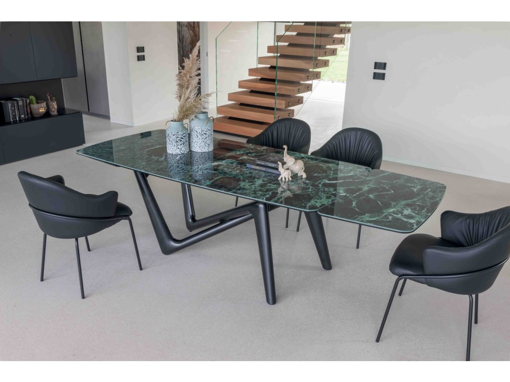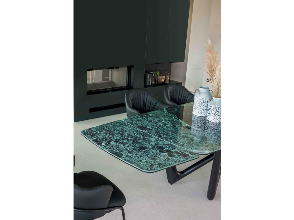 Rozklzstůl Esse je dynamický a vysoce inovativní jak z hlediska estetiky, tak funkčnosti. Pomyslný most k vytvoření stolu snů. Sošný objekt vyjádřený strukturou, která se proplétá jako prsty ruky a lehce podpírá keramickou desku s výsuvným mechanismem a zároveň doprovází její pohyb. Všestranný a exkluzivní!